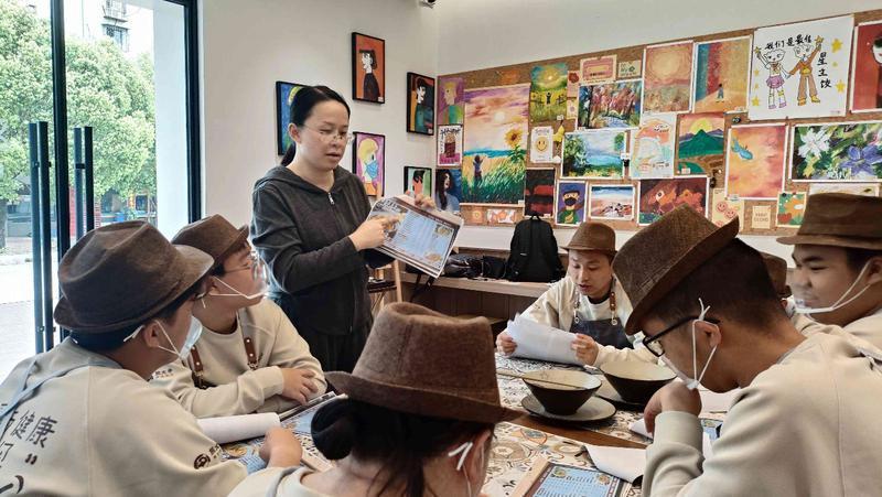 在“星点心愿”门店内,志愿者、特教老师在为“星青年”作上岗技能培训。 赖志昌 摄