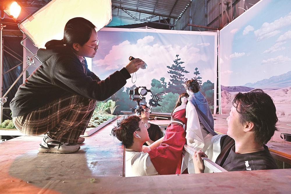 2025年3月10日,“布袋不呆”团队正在片场拍摄热门国漫《狐妖小红娘》的“二创”视频。