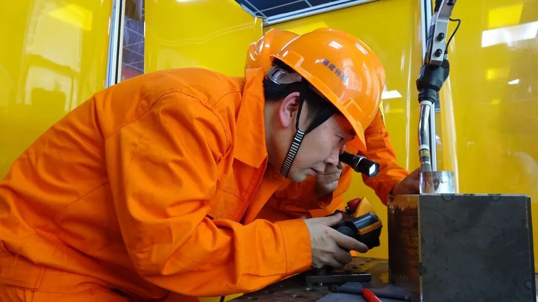 年逾不惑之际,陈照春做出了一个大胆的决定——跨界钻研机器人焊接技术。他深知,焊接工艺是特种设备安全的“关键一焊”,为了把手工焊接的“经验活”转化为机器人的“标准活”,他告别安静的实验室,钻进焊花飞溅的车间,跟着老师傅从握焊枪的姿势学起。夏日高温下,厚重的焊接服被汗水浸透,干了又结满盐霜;焊渣偶尔溅到手臂,留下细密的疤痕,他简单处理后便继续练习;强光灼伤眼睛,红肿刺痛难忍,冷敷缓解后依旧坚持钻研。凭借这份执着,他在技能竞赛的舞台上不断突破:2019到2023年,从省赛第二到省赛第一;在同年举办的首届全国职工数字化应用技术技能大赛上,46岁的陈照春作为赛场上年龄最大的选手,凭借扎实的功底和不断的总结思索,拿下理论、实操双第一,创下福建在该类焊接赛事的历史最佳成绩。