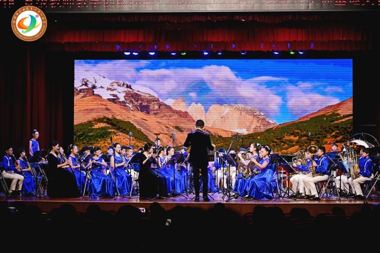 第一篇章管乐铿锵启华章。在常任指挥陈纯灵老师带领下率先登场。乐团以多样曲风轮番上演,演奏既显雄浑大气又不失灵动婉转,娴熟技巧与默契配合尽显省级乐团的扎实功底。成员校观澜小学博雅童声合唱团则以温婉《萱草花》初绽光芒,清澈童声营造静谧氛围;仓一小逐梦合唱团的小组唱《童年》《洒满人间的爱》用歌声串联温情,展现纯粹童真。