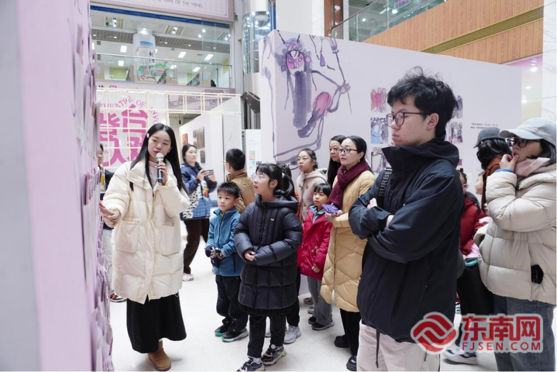“创想·剧场美术馆”聚焦儿童美育,孩子们以纯真视角勾勒戏曲人物的灵动身姿、华丽服饰;“转译·梨园新景” 主打当代表达,创作者们用多元艺术语言为梨园经典注入现代活力;“和光·叙语共生”则关注社会群体的多元表达,展现出传统文化在社会中的广泛共鸣与生命力。在专业导览员的带领下,亲子家庭在画作、影像与装置间穿行,感受着福建戏曲剧种所蕴含的文化魅力,为随后的创作积淀灵感。