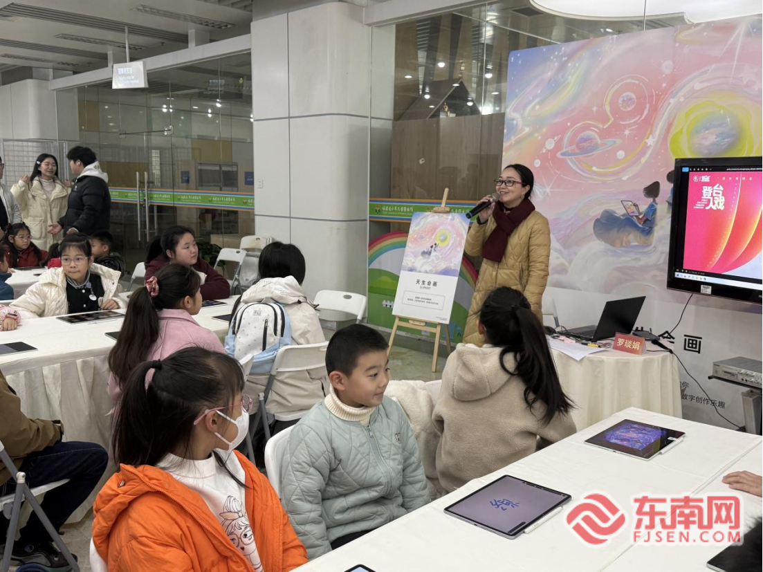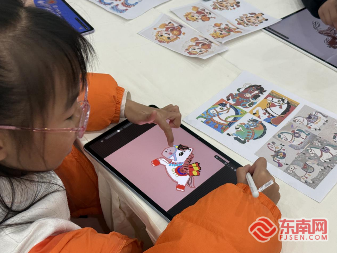 为让观众更深入地参与这场文化实践,展览期间同步推出了系列配套活动。2月1日上午,十五组亲子家庭齐聚福建省少儿图书馆一楼大厅,参与“艺见・数字绘画沙龙”活动。孩子们手持数绘板,将戏曲元素与马年特色相结合,创作数字画作,父母在旁协助鼓励,在亲子共创中体验科技赋能艺术的乐趣。此外,“迎新春戏曲徽章DIY”活动也同步开展,让更多市民能亲手制作戏曲元素特色徽章,感受传统节庆与非遗文化交融的喜悦。