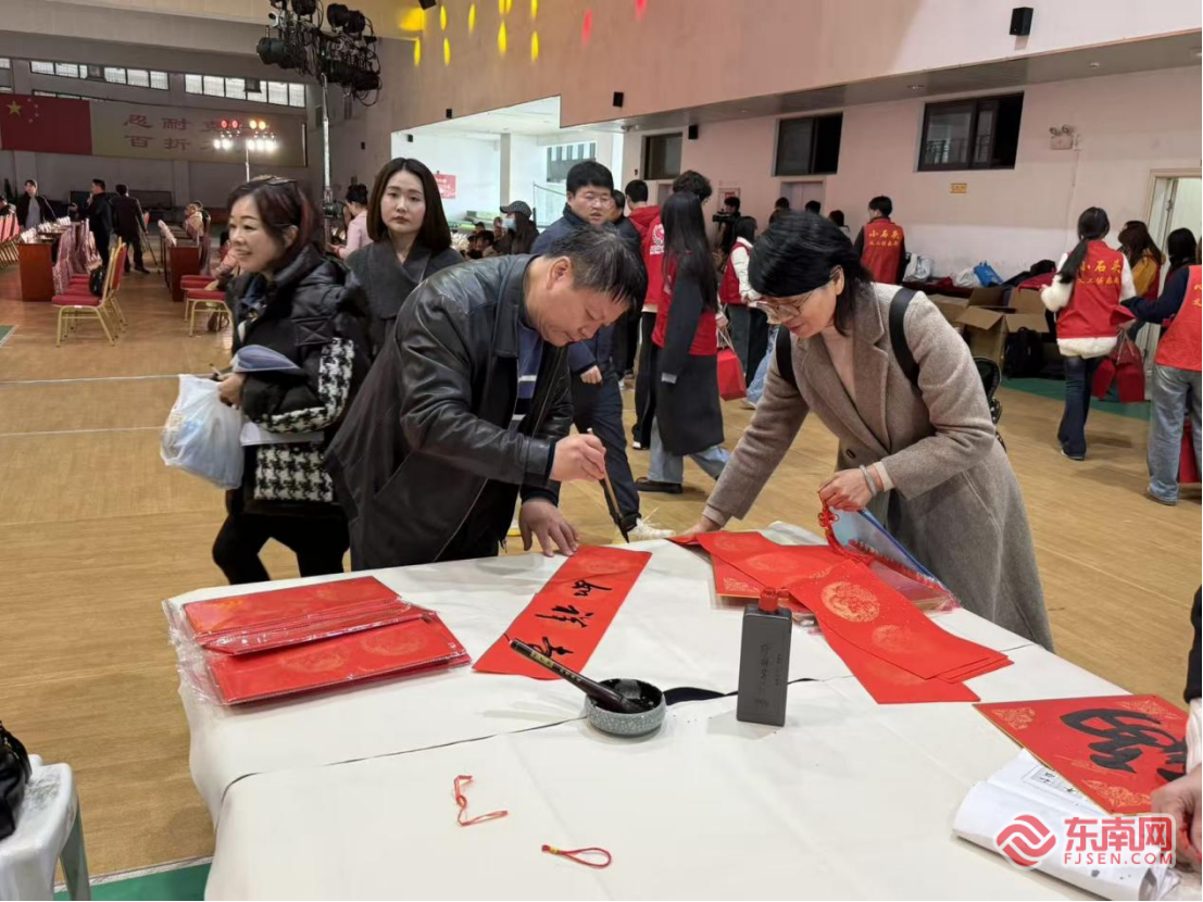下午14时起,场馆外已洋溢着浓郁的年味。在“翰墨迎春·送福区”,书法家、艺术家们现场挥毫泼墨,将一副副寓意吉祥的春联、一个个遒劲有力的“福”字,送给到场的领导嘉宾、残疾人朋友及志愿者们,笔墨间传递着浓浓的关爱与暖意。