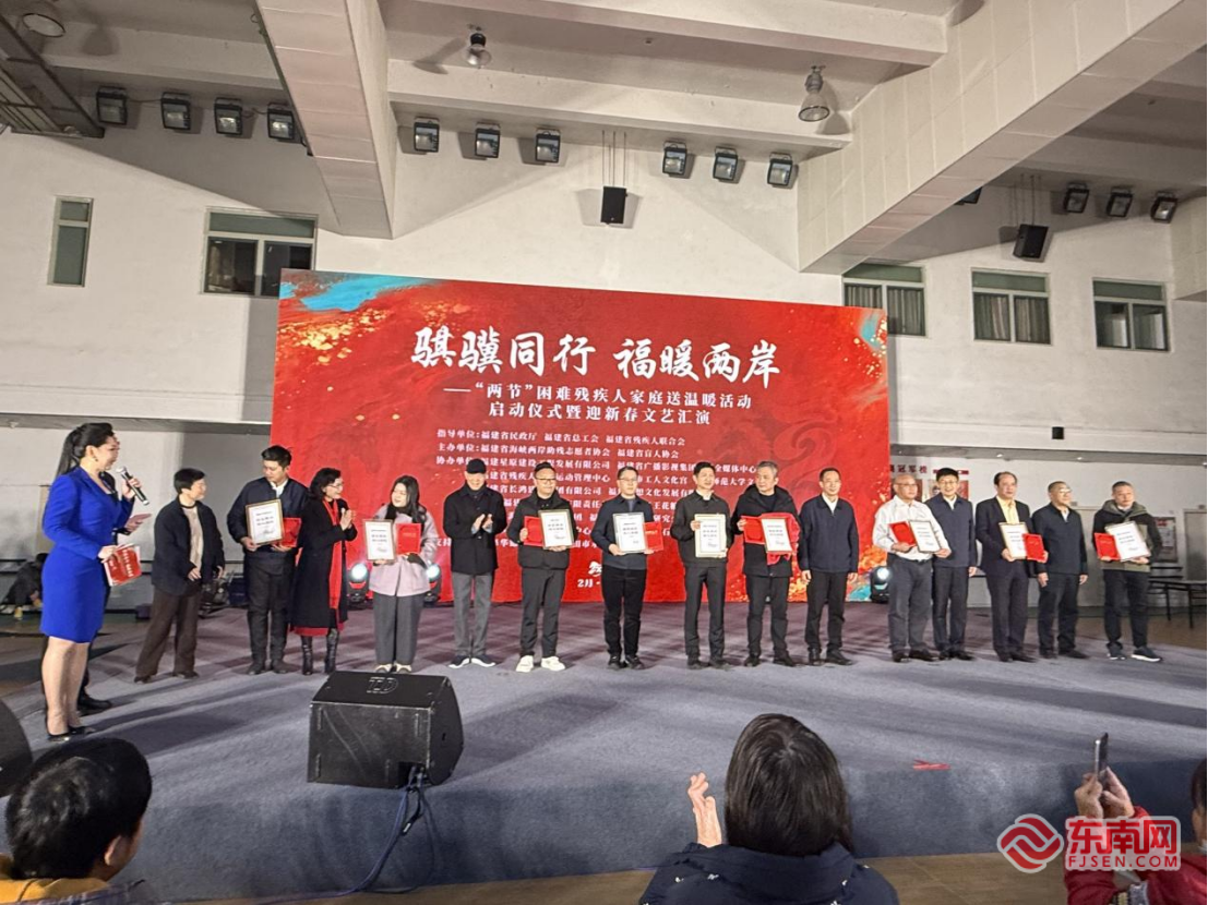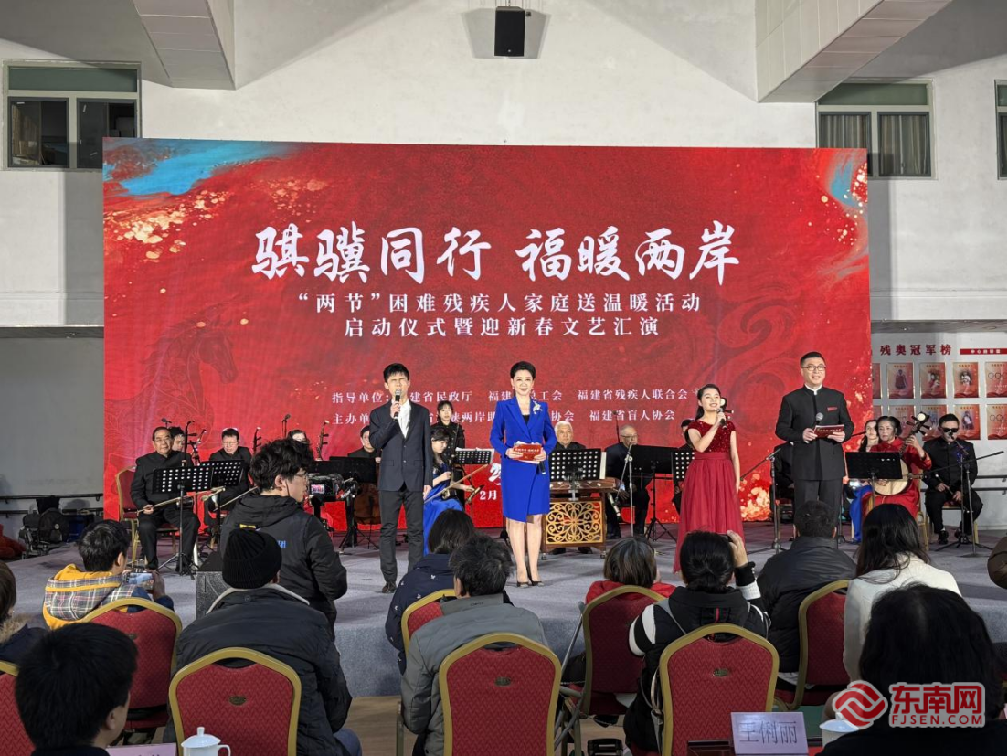 东南网2月2日讯(本网记者 薛莞馨 文/图)2月2日下午,福建省残疾人体育运动管理中心体育馆内暖意融融、欢声阵阵,“骐骥同行 福暖两岸”——2026年度“两节”困难残疾人家庭送温暖活动启动仪式暨迎新春文艺汇演在此隆重举行。省人大常委会党组副书记、副主任李德金出席并宣布活动启动。省残联党组书记、理事长宿利南,省民政厅党组成员、副厅长欧阳晓波,省总工会党组成员、副主席黄爱华等,与爱心企业代表、台湾同胞代表、残疾人朋友及志愿者共同参加。