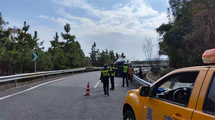 2月2日9时许,长深高速沙县机场收费站枢纽匝道(机场往沙县方向)发生小车冲撞路侧护栏事故。三明高速执法支队一大队执法人员接报后火速赶赴现场,经确认无人员伤亡后,随即联合高速交警、路勤部门开展现场勘查、车辆施救工作,快速清理事故现场,保障匝道通行秩序。20分钟后,事故车辆被安全拖运至沙县收费站广场。