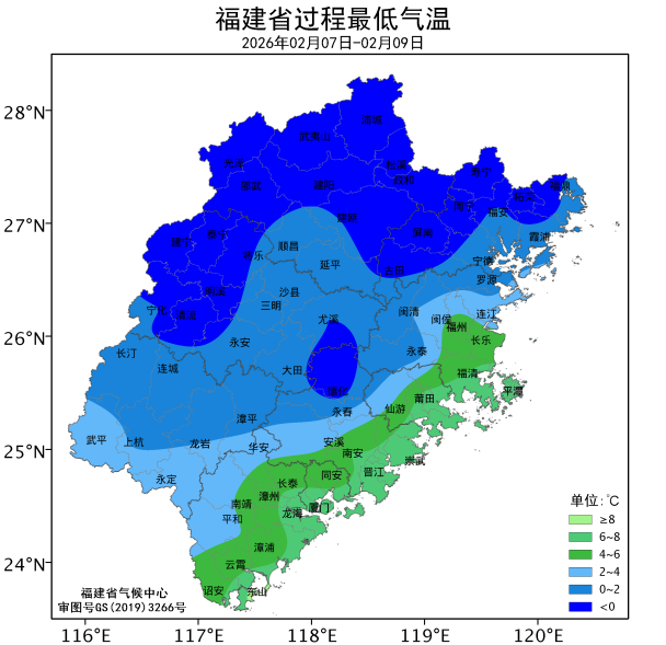 福州西部、泉州西北部城区达0~4℃