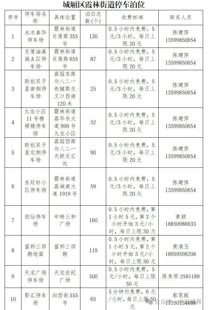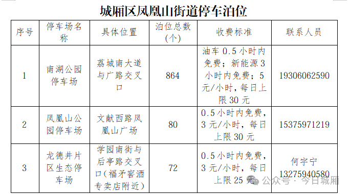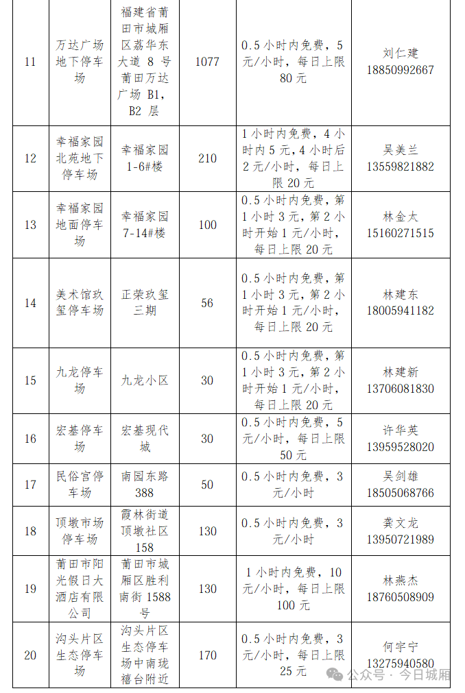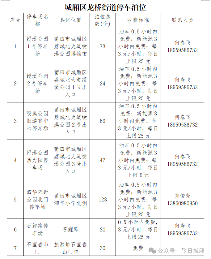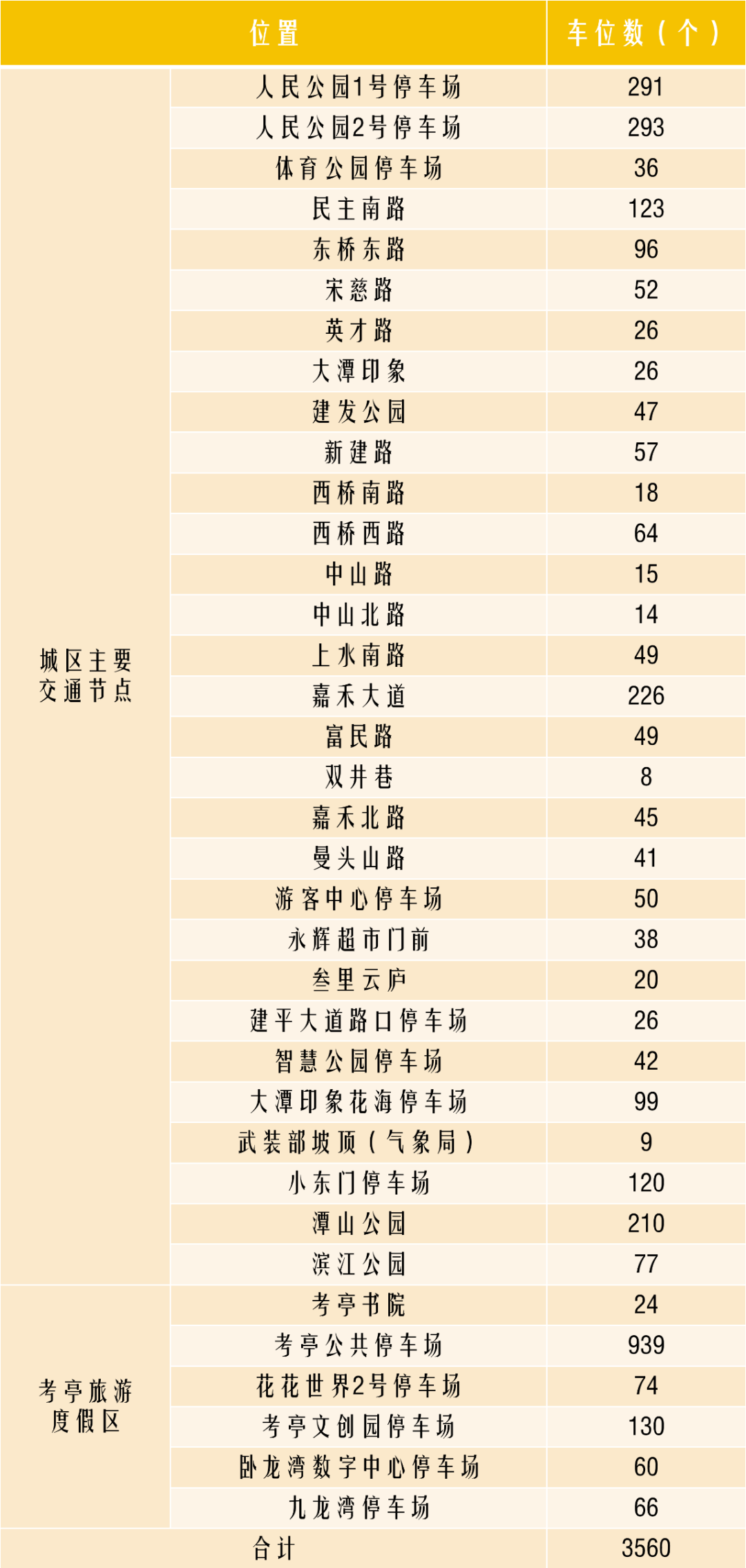 春节假期(2月15日至23日,共9天)每日8:00—22:00开放13个鲤城区属停车场(覆盖开元、鲤中、海滨、临江街道),共计1649个车位。其中,江南公园、北滨江公园停车场实行全天开放,满足市民游客停车需求。