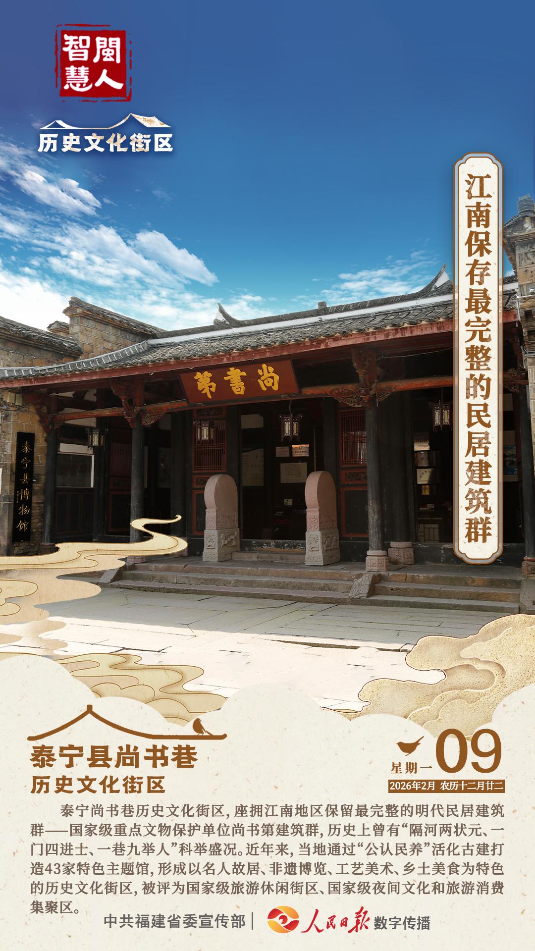 泰宁尚书巷历史文化街区,座拥江南地区保留最完整的明代民居建筑群——国家级重点文物保护单位尚书第建筑群,历史上曾有“隔河两状元、一门四进士、一巷九举人”科举盛况。近年来,当地通过“公认民养”活化古建打造43家特色主题馆,形成以名人故居、非遗博览、工艺美术、乡土美食为特色的历史文化街区,被评为国家级旅游休闲街区、国家级夜间文化和旅游消费集聚区。