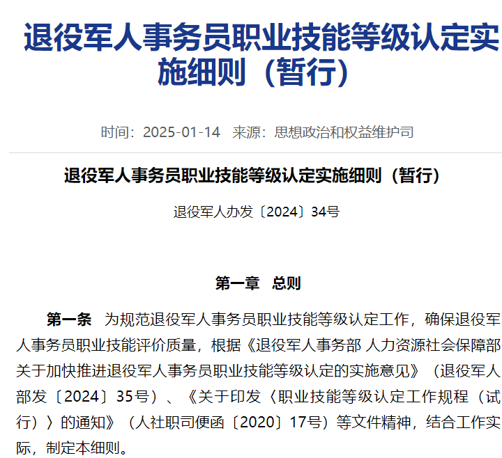并公布了《退役军人事务员职业技能