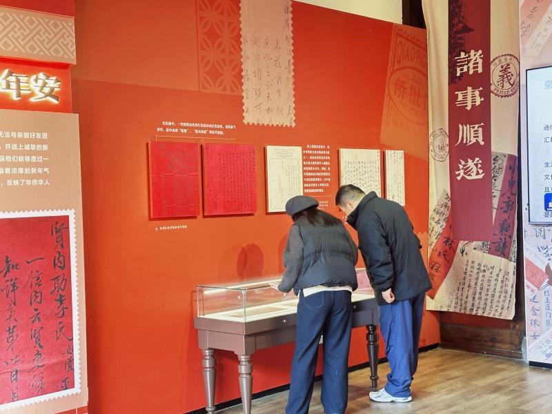 时值马年春节临近,“春笺万里寄年安”展区尤为触动人心。一封封寄托着思念与祝福的侨批,与无数海内外游子“每逢佳节倍思亲”的情感深深共鸣。侨批是华侨文化的重要组成部分。展出的信件笔墨间浸透着浓郁的年味,细致刻画了华侨家庭的生计日常,亦折射出中华文化中深厚的家庭观念与传统伦理。展览现场特设的“福批”打卡墙,吸引了许多观众驻足盖章、留影,在互动中感受跨越山海的温情记忆。