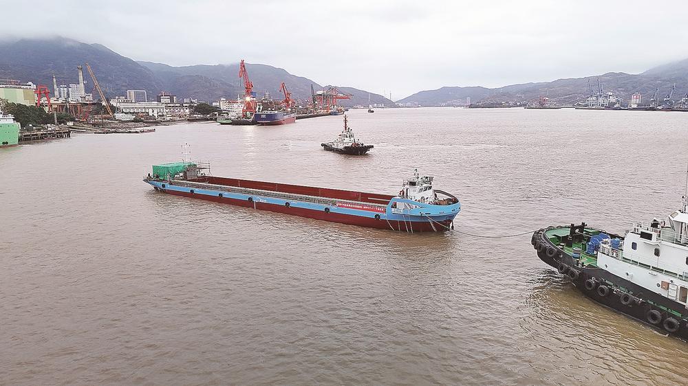 闽江首艘千吨级多用途电动集散船下水