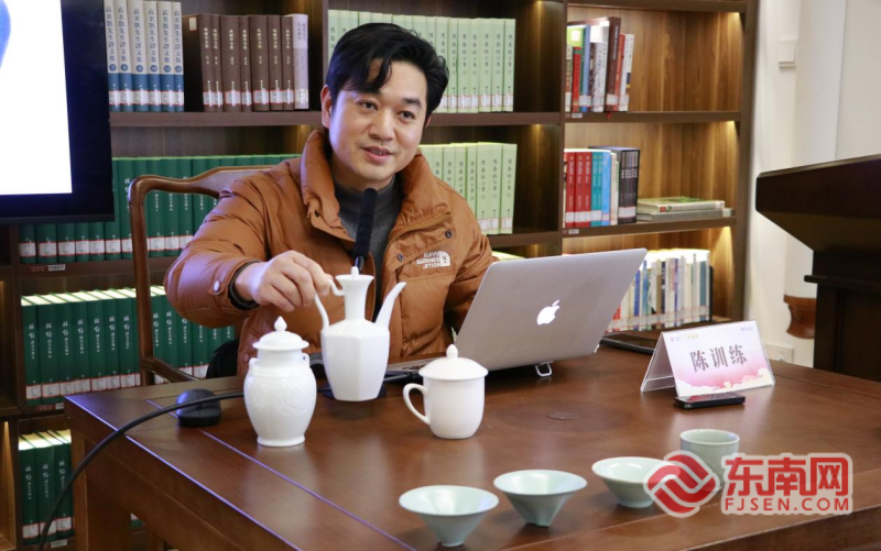 东南网2月12日讯(本网记者 郑琦 文/图)2月7日下午,福建省图书馆四楼“八闽书房”雅趣十足。省级非遗项目浦城大口窑青白瓷代表性传承人陈训练,携福禄杯、六角壶等青白瓷器做客福建文旅讲坛,以“福瓷共生——‘福’文化与青白瓷的美学交融”为题,带领民众一同探寻福文化与青白瓷相伴相生的文脉密码,感受“福韵瓷魂”的独特美学魅力及其当代价值。