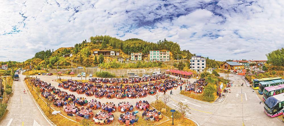 一大早,游客们畅游大仙峰·茶美人景区,在漫山樱海与古韵建筑间,感受当地自然与人文之美。中午,110桌全猪宴开席,原生态乡土美食香气扑鼻,游客围坐畅谈、大快朵颐,品味浓浓新春年味。