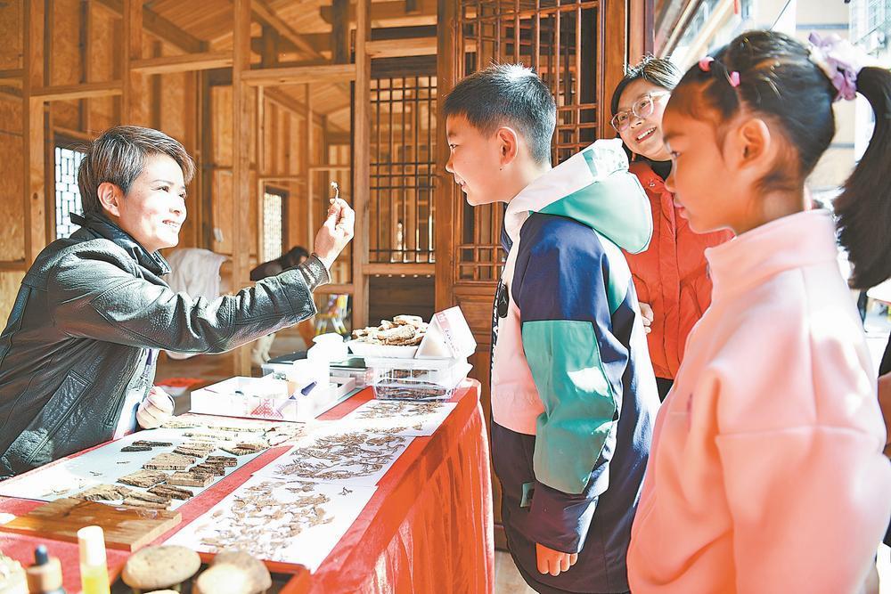 软木雕引发小朋友的浓厚兴趣。通讯员 王英德 福建日报见习记者 李子衡 摄