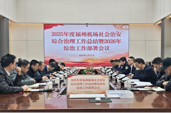 会上,机场公安局通报了2025年度福州机场关于空防反恐、治安消防、交通安全、反诈防盗等方面存在的问题及下一步工作建议。机场公安局林健局长就做好2026年福州机场社会治安综治工作提出三点意见:一要清醒认识当前安全稳定形势,凝聚思想共识,在全面推进新时期机场综治工作中主动担当作为。二要突出机场综治工作重点,狠抓高效能治理,全力做到精确防范、精细管控、精准打击、精心服务。三要进一步明晰工作责任,形成联动合力,全面推动机场综治各项工作落地见效。