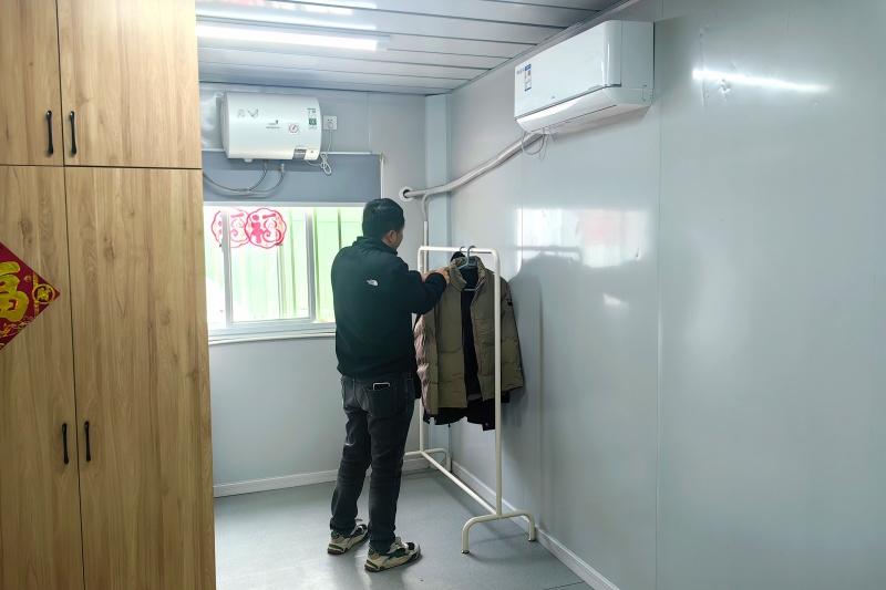 推开驿站公寓的门,映入眼帘的是一个布置温馨的“小家”。来自江西上饶的出租车司机袁清正弯腰收拾着房间,身后的独立卫浴和墙上的空调一应俱全。春节前夕,他特意让老婆孩子先回了老家,自己则盘算着趁着节前多跑两天,多挣点钱。