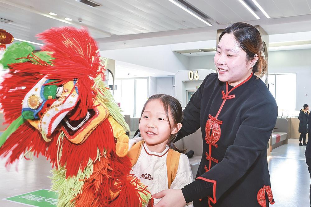 近日,在泉州晋江国际机场,经典闽南木偶戏轮番上演,旅客们沉浸其中,在欢声笑语中感受泉州的文旅温度。图为小朋友体验闽南木偶戏。福建日报记者 汤海波通讯员 黄晓静 摄