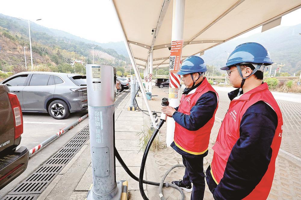 近日,国网福安市供电公司组织党员服务队深入辖区动车站、汽车站、繁华商圈等重点区域,对各电动汽车充电站开展专项检查工作,全力护航群众春节“回家路”。福建日报通讯员 吴其文 摄