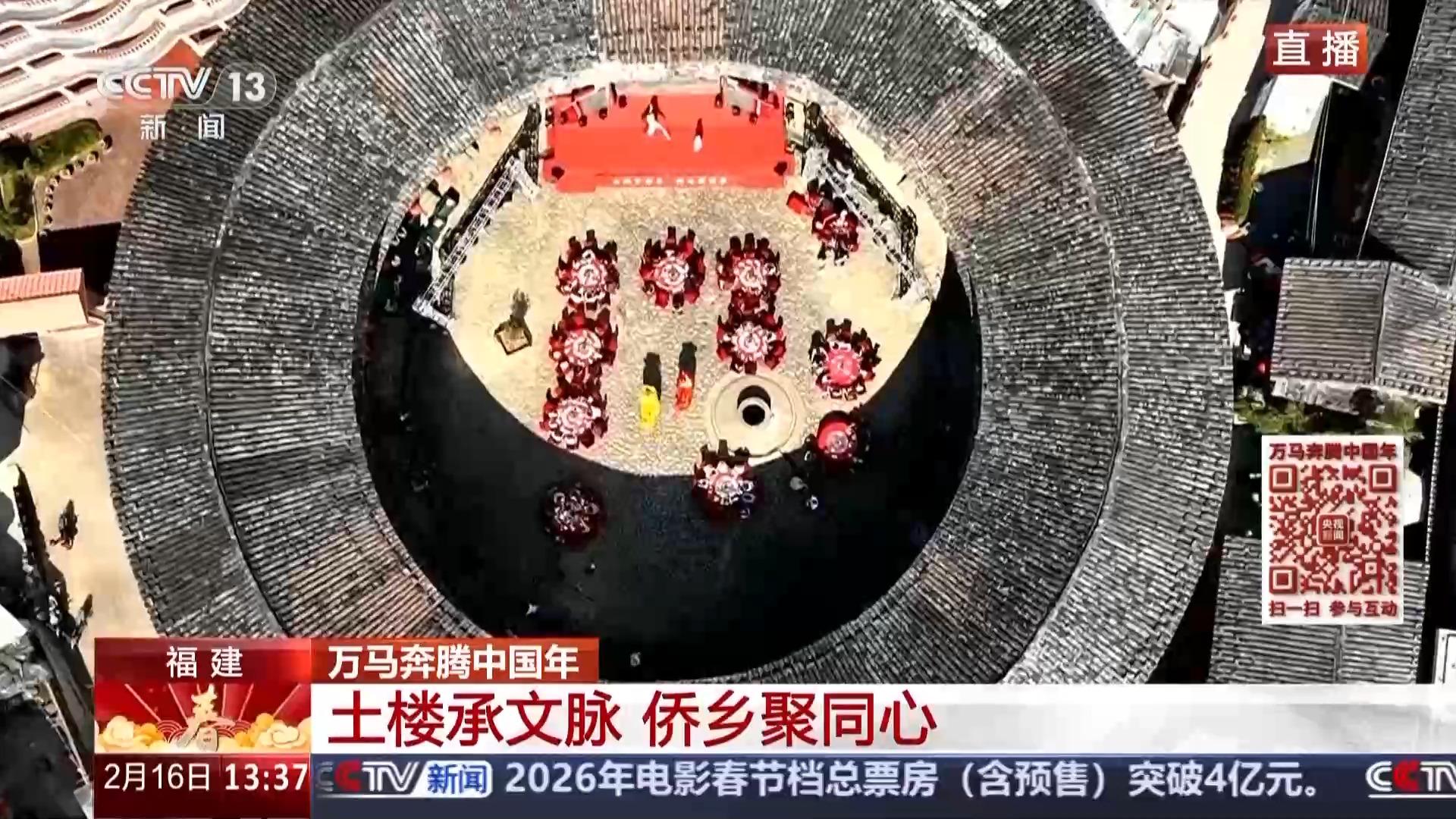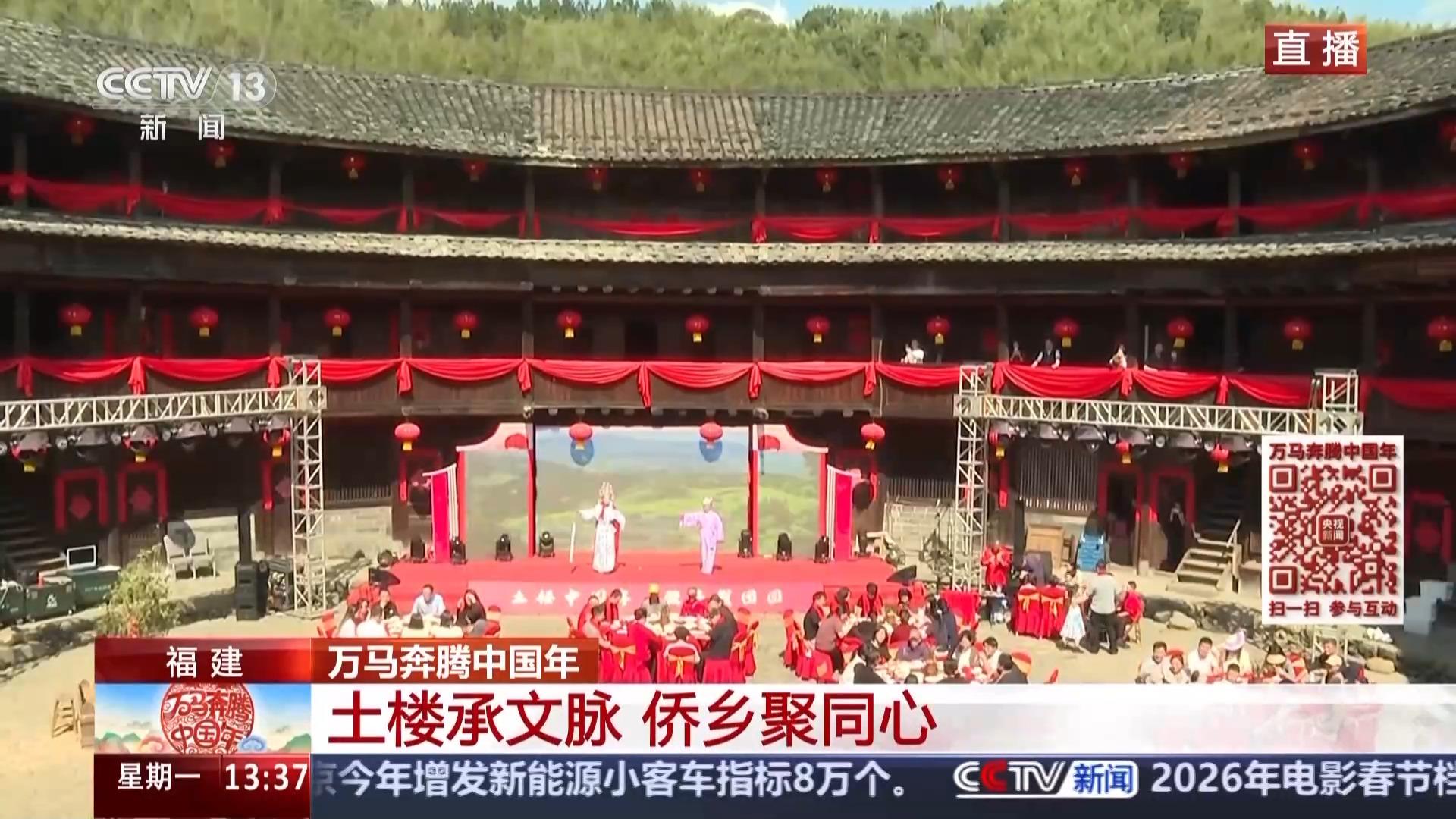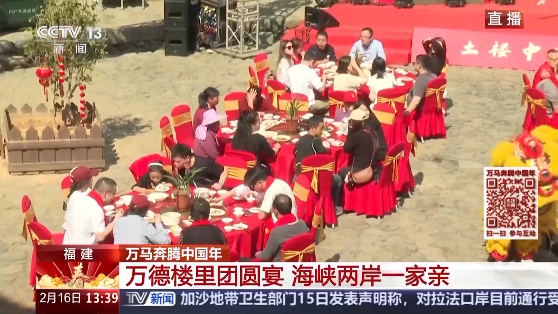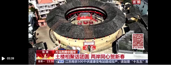 位于福建漳州的世界文化遗产南靖土楼,是两岸同胞同根同源的精神地标,更是跨越海峡的团圆港湾。今天,在漳州南靖县梅林镇的万德楼里,一场融汇烟火气息、非遗展演以及浓浓乡情的新春团圆宴正在举行,让我们跟随记者一起来感受一下土楼的热闹场景吧。