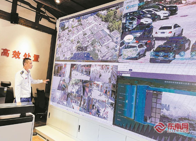 王昕介绍道,在三坊七巷一南一北两个楼顶的最高点,分别配设了高空预警“鹰眼”“火眼”系统。“火眼”系统可以对景区进行24小时全方位监控和30秒一轮的巡航监测;“鹰眼”系统则可通过超高清摄像头俯视取景,生成AR实景地图,实现对景区的空中总览。此外,这里还配备了由超轻无人机、全自主无人机场、四维管控平台组成的全自动无人机巡检系统,可预设多条定时自动飞行线路,实现周期自动巡检模式。在日常系统自动定时作业时,一旦突发火情灾情,就可以手动接管设备,指定地点开展飞行侦察。