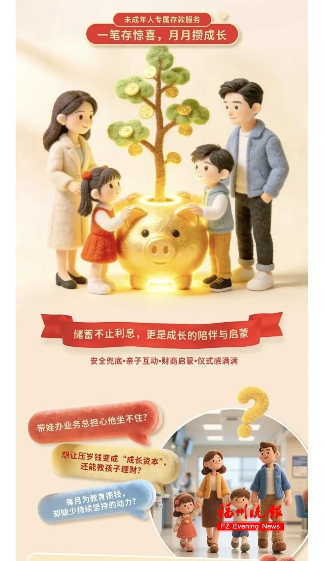 孩子存1000元 利率比大人20万大额存单还高? 看似不可能的事 今年春节 在福州金融市场却成了现实 春节期间,孩子们的口袋被压岁钱塞得鼓鼓囊囊,如何打理这笔“巨款”成了家长们热议的话题。 面对2026年春节后的压岁钱理财季,福州各大国有银行、商业银行纷纷出招,不仅推出了利率优于普通定存的专属产品,更将目光投向了保险、基金定投等中长期配置,试图从小培养孩子们的财商,同时锁定家庭长期收益。