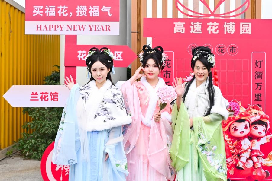 市民身着古装逛花市。相关单位供图