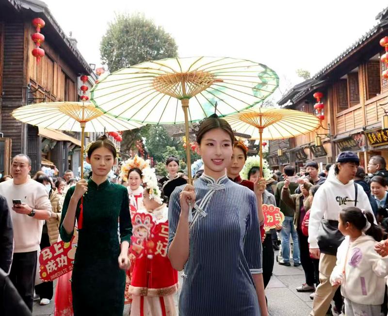在非遗博览苑,非遗传承人现场展示簪花、三条簪等非遗发艺,邀请志愿者沉浸式体验传统头饰,共同营造“年味上头,鸿运当头”新春打卡场景,让非遗技艺以时尚姿态融入生活。