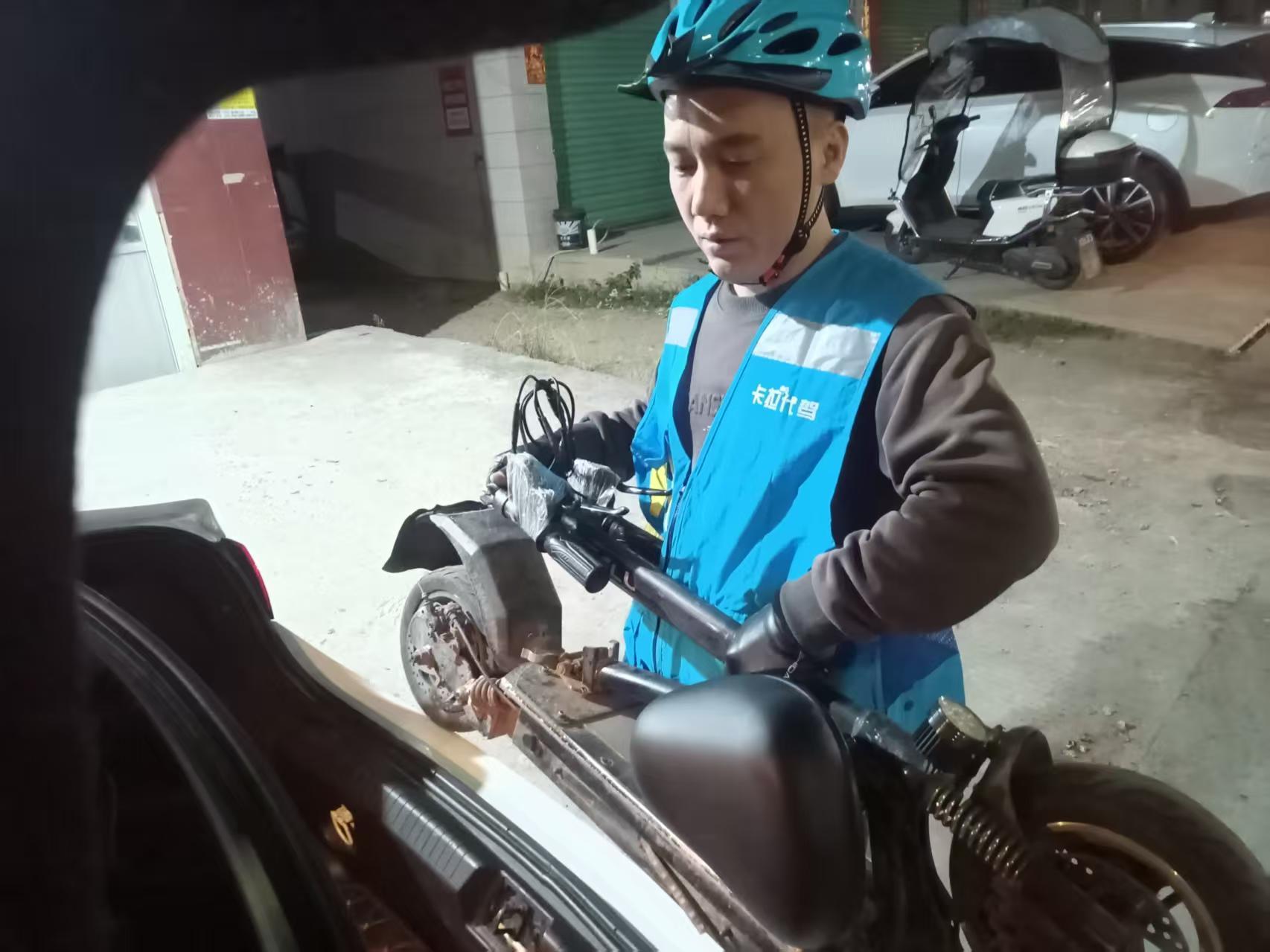 在李金福看来,做代驾最难熬的是回程。冬天送完客人后,山里海拔较高,骑着小电动车回镇上,手脚和脸都冻僵了。