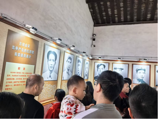 来自杭州的周女士与丈夫华先生,带着正在上小学的一对儿女认真聆听导游讲解。她告诉记者:“古田会议是中国革命历史上一次至关重要的会议。春节带孩子来到这里,就是希望他们铭记历史,在新的一年学习上有更好地成长和进步。”