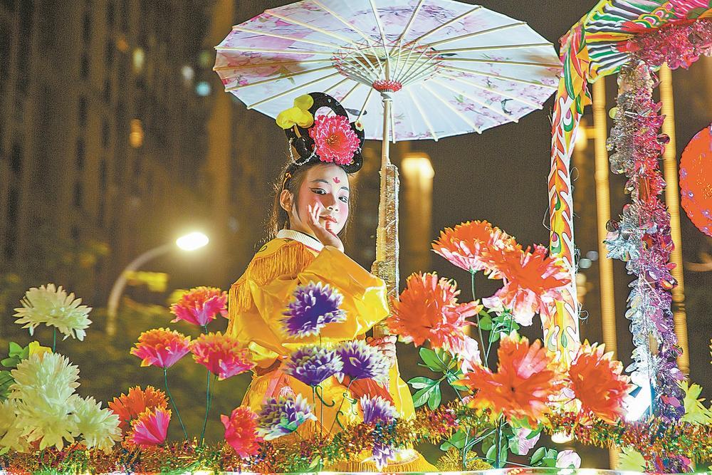 数十年来,随着时代发展,龙艺的扎制和呈现形式也在与时俱进。平和龙艺可白天巡游,也可夜间巡游。夜间巡游时,每节艺板都装有发光灯饰。“最早用火把、煤油灯,后来有了发电车,装的是日光灯、白炽灯,主要起照明作用。再后来有了霓虹灯、彩灯,现在用上各式LED灯,流光溢彩,漂亮多了。”李渊才说,新技术、新设备的应用,如灯光随节奏闪烁、灯笼旋转变幻、龙头喷雾等,都让龙艺更具观赏性。