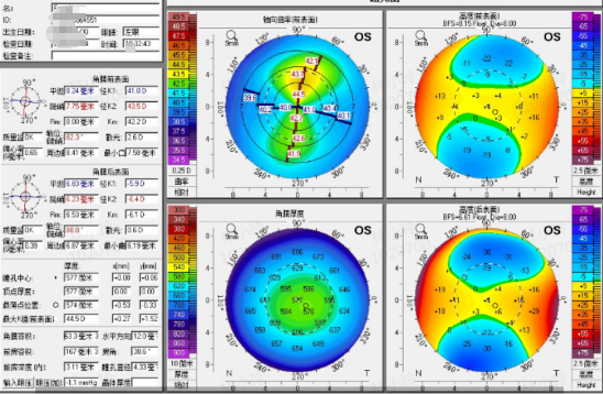 经过全面细致的检查,结果显示小曾右眼有525度近视合并225度散光,左眼则是425度近视合并275度散光。值得庆幸的是,她既符合TICL晶体植入术的条件,也符合角膜激光飞秒手术条件。考虑到小曾散光较大,龙岩爱尔眼科医院的医疗团队经过综合评估和审慎讨论,优先为她选择了不在角膜上做切削的TICL晶体植入术。