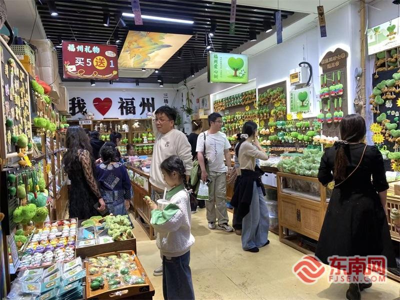 福州市公共消费品牌“福州有礼”推出实打实的惠民福利,新春以来各门店客流爆棚,爆款好物频频补货,客流与销售额同比显著提升,实现人气与经营业绩双向共赢。“福州有礼”下杭店店长池晓梅表示,佛跳墙、手工线面等产品,以及“茉小莉”玩偶、冰箱贴等文创产品,都很受游客喜爱,春节期间每日销售额较平时上升近100%。