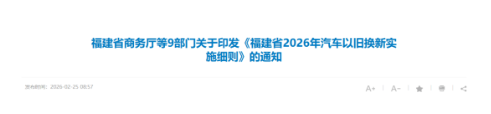 《福建省2026年汽车以旧换新实施细则》