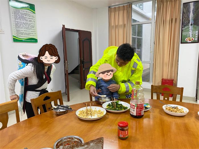 现场应急处置完毕后,执法人员考虑到一家人历经长途驾车和事故惊吓,身心俱疲,主动伸出援手,将驾驶员及一家四口护送回执法营区休整,并为他们准备了热气腾腾的饭菜。执法人员悉心照料、温柔安抚受到惊吓的年幼孩子,用细致入微的关怀,渐渐抚平了一家人慌乱不安的情绪,获得了当事人的衷心感谢。