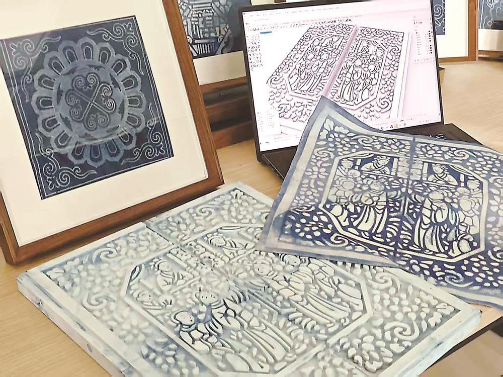 “蓝夹缬从制靛到刻版再到印染,程序繁多、工艺精妙,需要功底深厚的匠人在实木板上直接雕出样板,技术难度大、试错成本高,导致该工艺难以传承。”黄碧红曾专程前往温州等地调研,但因为不熟悉雕刻技术,终是无功而返。
