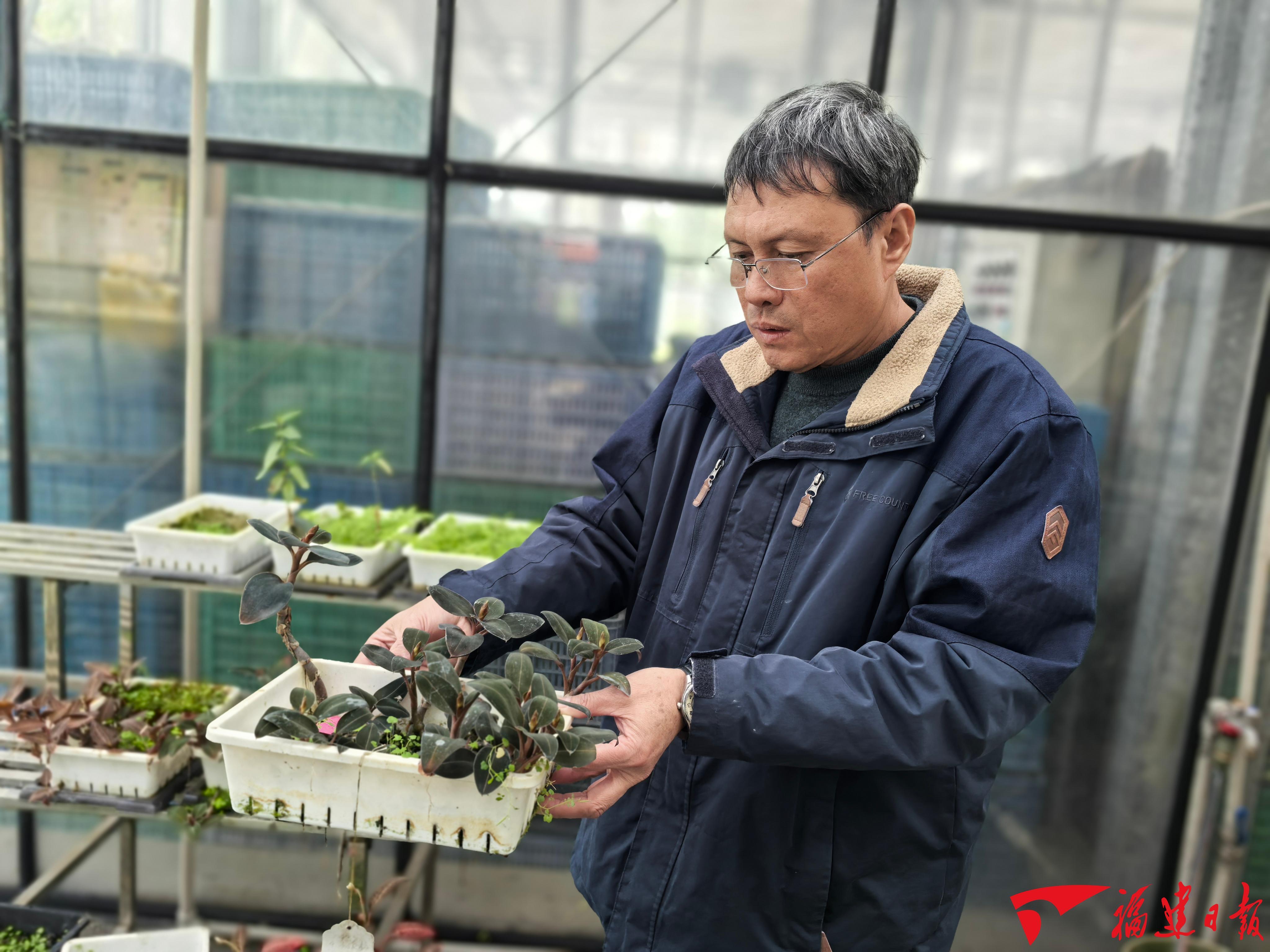 陈碧华在温室大棚察看人工繁育的血叶兰长势。福建日报记者 张辉 摄
