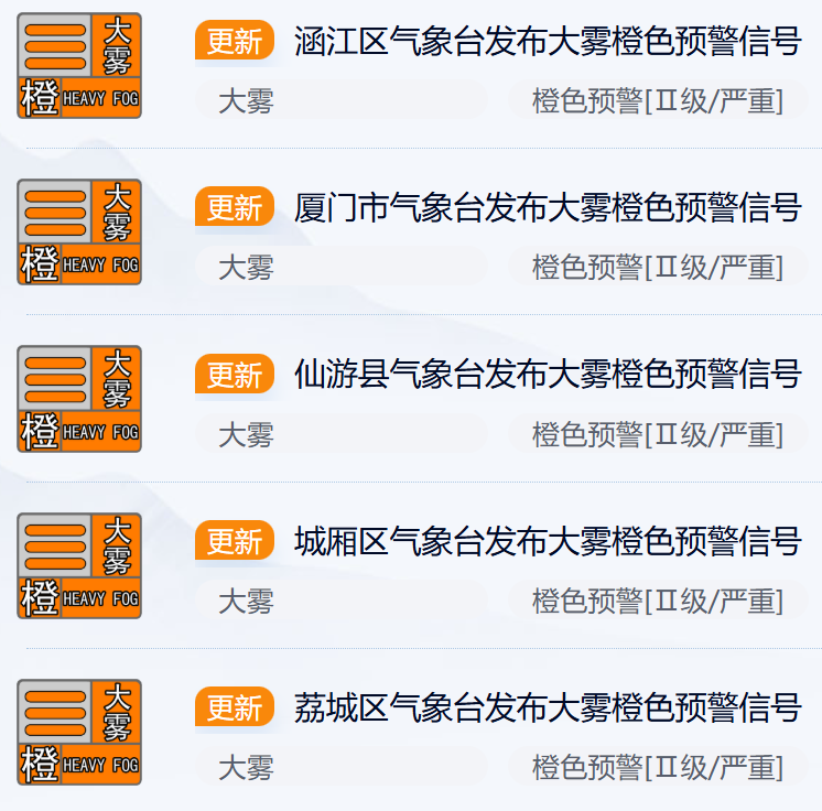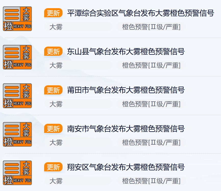 福建多地发布大雾橙色预警