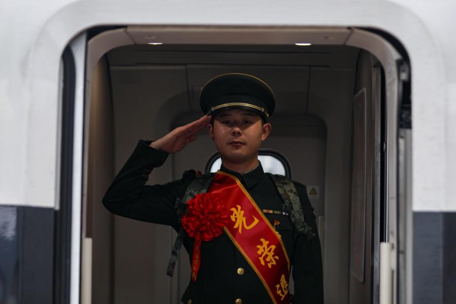 最是不舍离别时。车站月台上,送行的战友与老兵紧紧相拥,千言万语化作无声的泪光与真挚的叮咛。当列车缓缓启动,车窗内外的手仍在用力挥动。老兵们庄严举起右手,向战友、向第二故乡,敬上最后一个军礼。