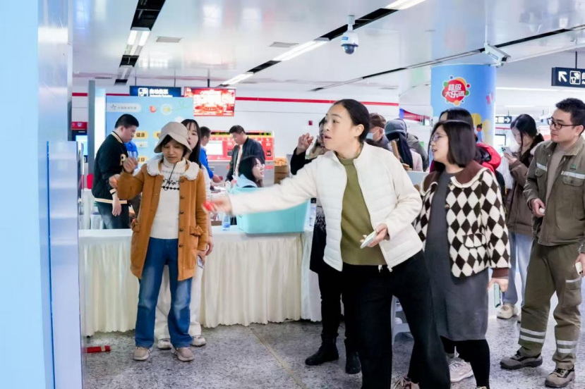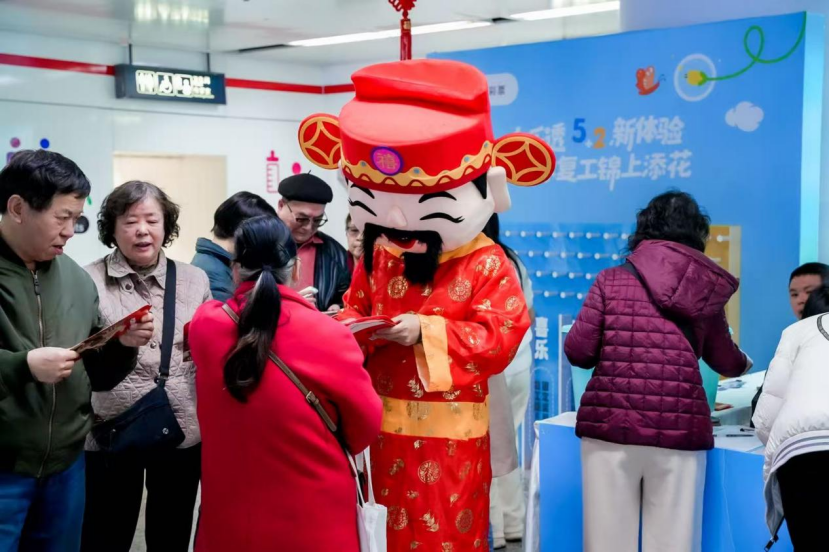 财神爷人偶巡游是当天的人气焦点。人偶穿梭于地铁通道,与过往市民握手、击掌、合影,并随机派发内含复工祝福卡的“好运红包”,以喜庆轻松的方式传递“开工见喜”的寓意,吸引不少过往者拍照留念。