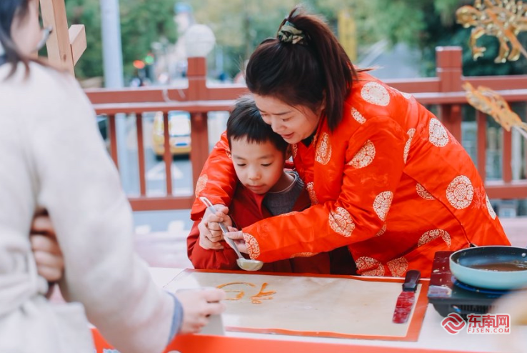 与此同时,簪花围、三条簪等闽式梳妆技艺走红网络,“年味上头,鸿运当头”成为新春打卡热词。雕版印刷、寿山石雕刻、漆器制作、木活字印刷等手作体验区也排起长队。沈阳游客林女士带着孩子体验髹漆皮具后笑着说:“大漆的工艺太神奇了,孩子玩得入迷。这种南北方的文化差异,正让人觉得着迷。”