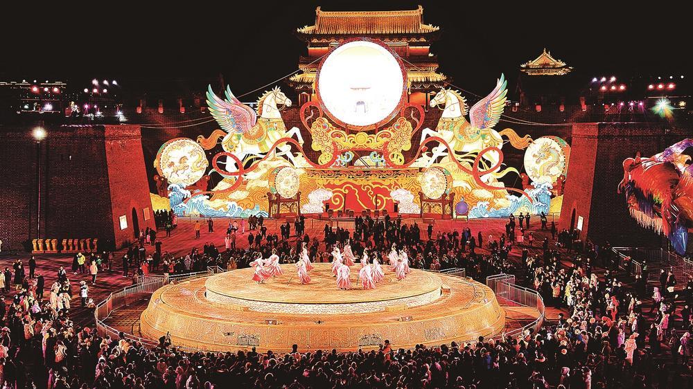 大同古城永泰门,非遗更与科技深度互嵌。长50米、高22米的巨型主灯《天马鼓舞·盛世呈祥》前,游客们击响小鼓,大鼓随之光影律动——四川自贡的传统灯彩技艺,在这里幻化出北魏战马奔腾的雄姿。灯会里,魏碑书法、北魏蓝釉、云冈造像与浪浪山小妖怪、花木兰等潮流IP同台竞技。“我们希望多花点心思,让文化‘活’起来,让游客感受到满满的年味儿。”灯会工程总负责人米梦林说,截至目前,古城灯会进客量约40万人次。