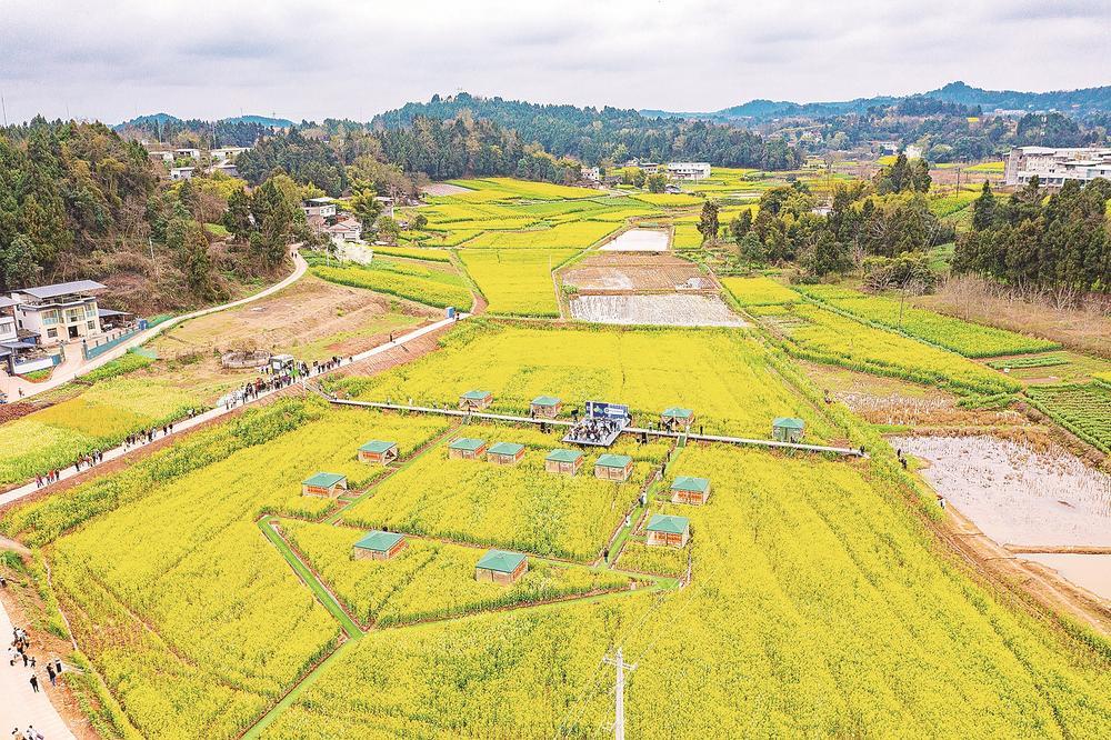 变化,源自当地以农村宅基地制度改革试点为契机,通过腾退闲置宅基地、盘活村集体闲置厂房、规范农用地转用等举措,一方面将昔日碎片化的丘区农田盘活为“田成方、路相通、渠相连”的高标准“天府粮仓”,同时以农文旅融合打造全新的乡村旅游综合体。