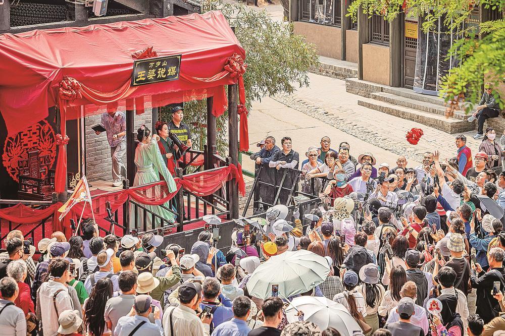 万岁山武侠城上演《王婆说媒》。 (资料图片)
