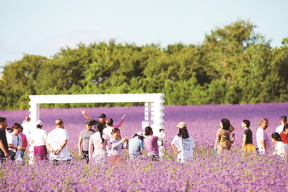 游客畅游查干湖花海。 吉林日报记者 王学雷 摄