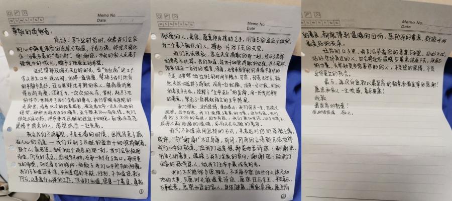 患者家属写下感谢信。