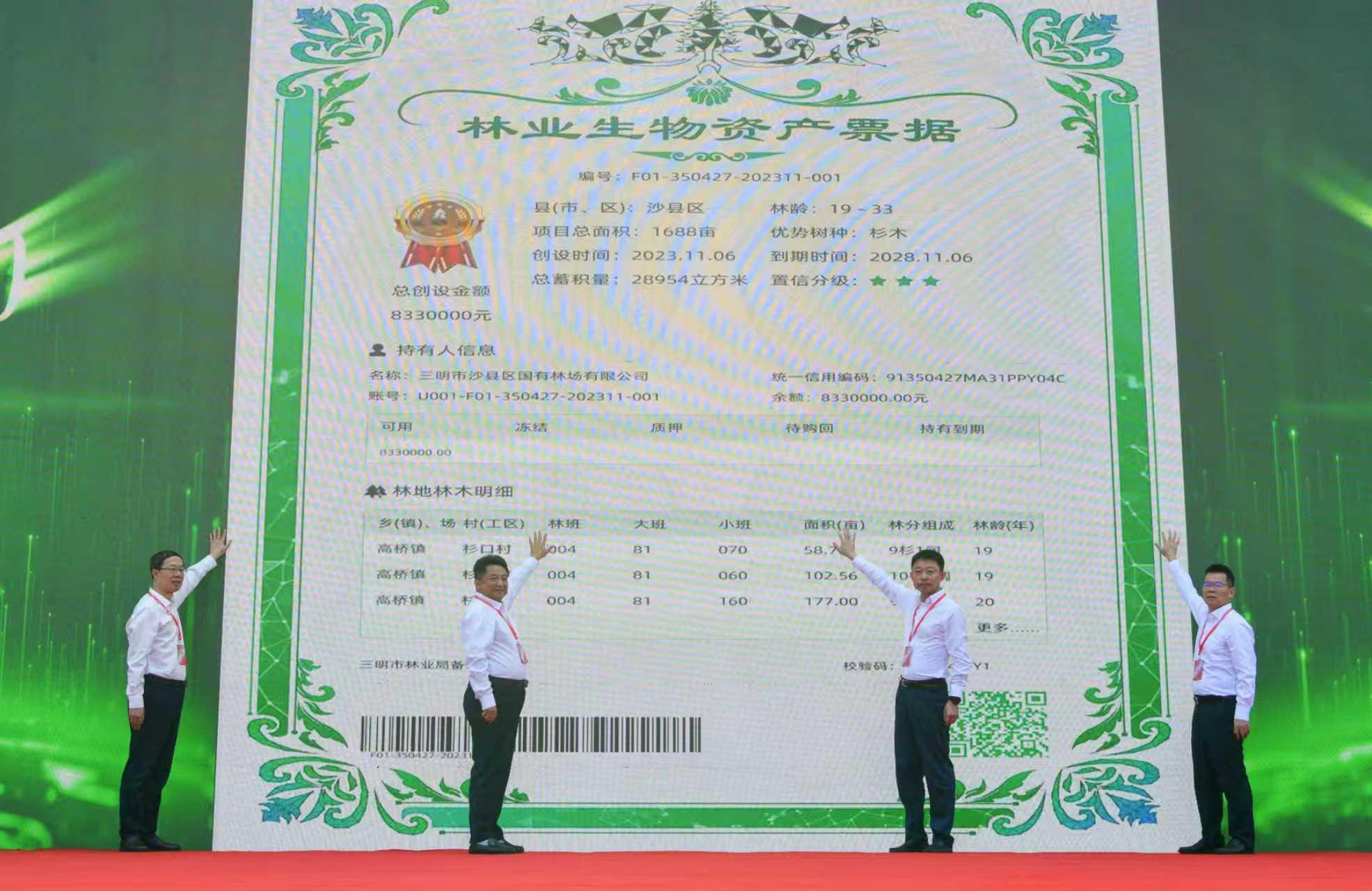 2023年11月6日,三明市发布全国首张林业生物资产票据。福建日报记者 游庆辉 摄