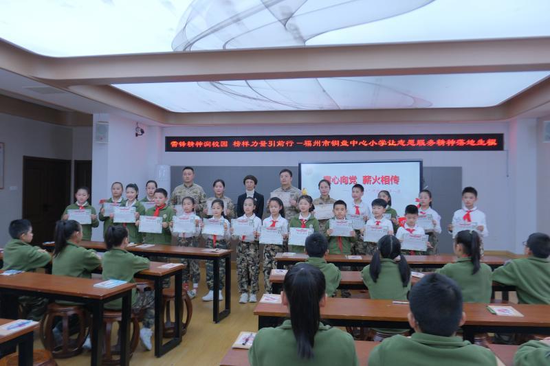 福州第一干休所宣讲员为学生颁发“校外辅导员”聘书。 东南网3月6日讯(本网记者 林夏悦 文/图)志愿服务并不遥远,每个人都可以是“小雷锋”。为深入学习雷锋精神,传承红色基因,3月5日,福州第一干休所联合铜盘中心小学,开展“童心向党 薪火相传”开学思政第一课活动。 活动在《学习雷锋好榜样》的音乐中拉开序幕,夏云志校长为同学们讲授雷锋精神的时代内涵。随后,福州第一干休所“薪火红色宣讲团”的宣讲员,分别讲述本所开国将帅的英雄事迹,用鲜活的故事传递榜样力量,还为成为红色宣讲员的学生颁发“校外辅导员”聘书。 “校外辅导员”代表分享了自己利用课余时间走进红色场馆、担任志愿讲解员的经历。从紧张忘词到从容自信,大家在一次次讲解中收获成长:“在介绍英雄故事的同时,我也读懂了今天幸福生活的来之不易。每一个故事、每一段历史,都让我更加热爱祖国。我也想成为别人的榜样。” |