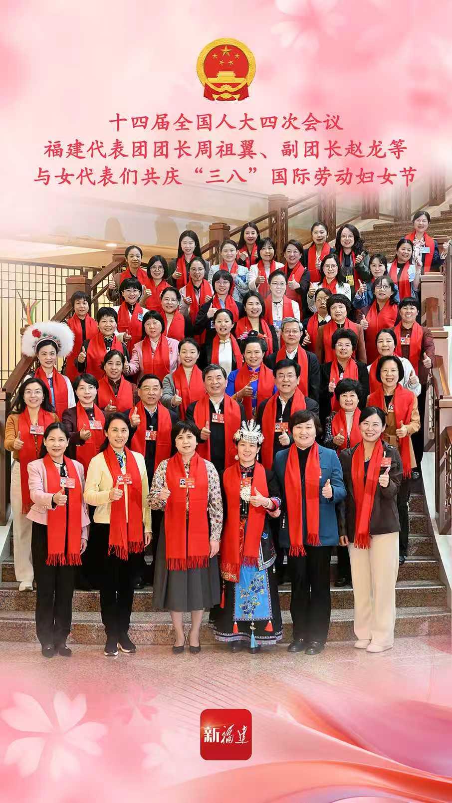 “三八”国际劳动妇女节来临之际,在北京参加十四届全国人大四次会议的福建代表团团长、省委书记、省人大常委会主任周祖翼代表省委、省政府向参加全国两会的我省女代表、女委员、女工作人员,向全省广大妇女致以节日的美好祝福。希望全省广大妇女牢记嘱托、感恩奋进,争当忠诚笃行的先行者,争当全方位推动高质量发展的生力军,争当文明风尚的护旗手,为奋力谱写新征程新福建建设新篇章贡献巾帼力量。