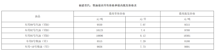 调整后的福建油价。