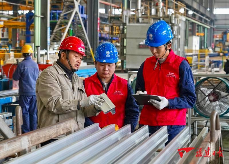 国网福建电力(福州红色榕光)“双满意”共产党员服务队队员到福州东南汽车城的福建祥鑫新材料科技有限公司车间,开展志愿巡查服务。 陈德钧 摄